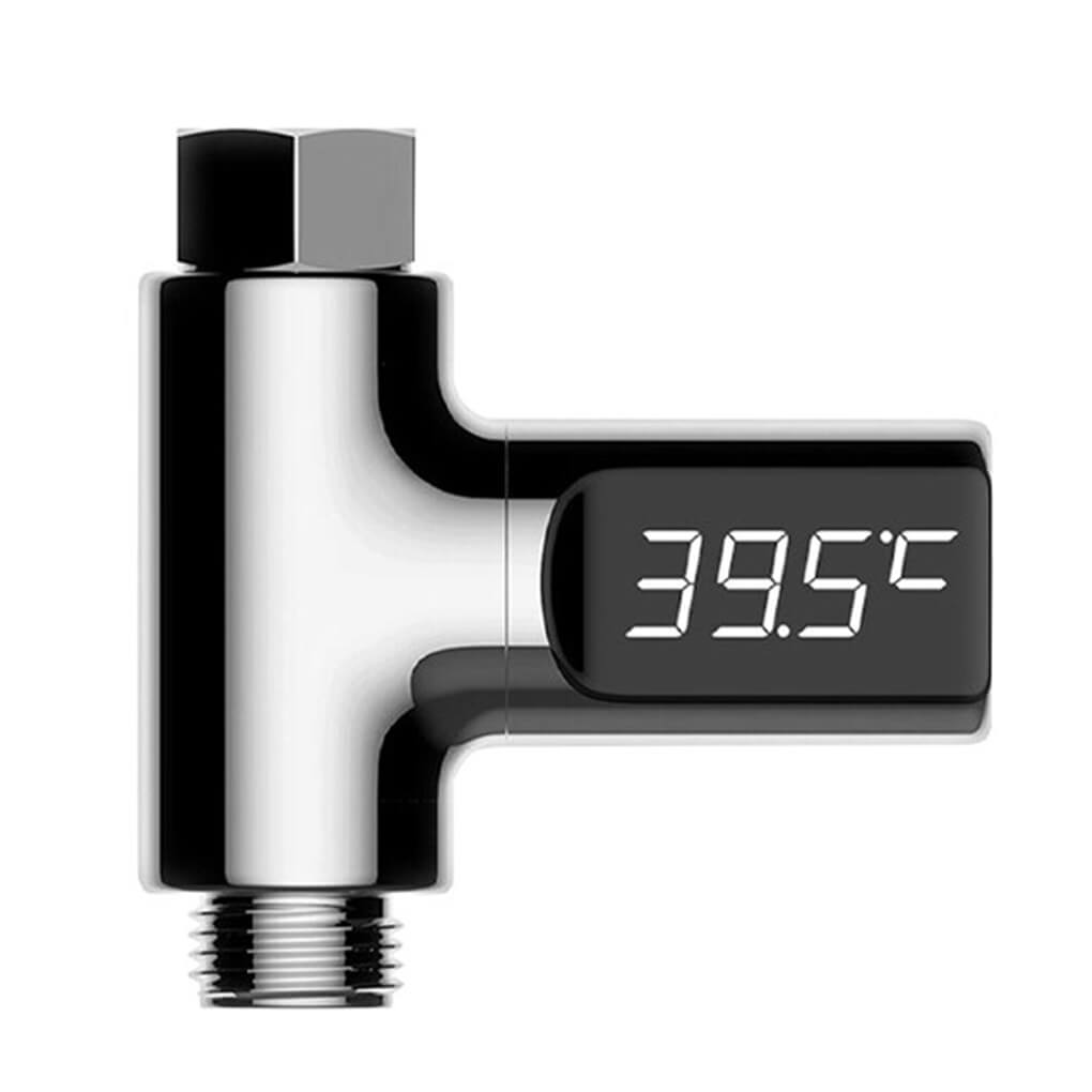 Проточный термометр для душа Filloиспользуется для точного выставления температуры воды. Термометр для душа произведен из АБС пластика и поликарбоната, а внешняя поверхность обработана матовым хромом. Значения температуры выводятся на жидкокристаллический цифровой дисплей, которому не страшна вода и который можно крутить на 360 градусов. Проточный термометр для душа Fillo измеряет воду в диапазоне температур от 5 до 85 градусов с минимальной погрешностью. Проточный термометр легко установить самостоятельно – достаточно прикрутить его на душ при помощи резьбового соединения.