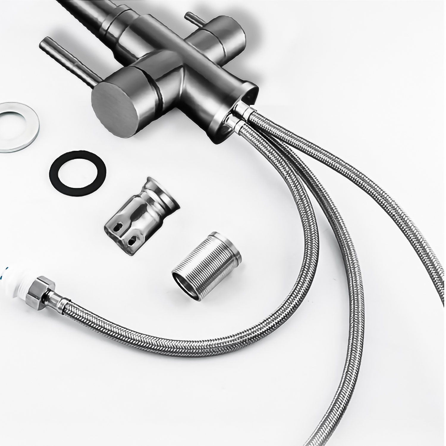 Этот смеситель имеет поворотный излив на 360 градусов, что обеспечивает удобство использования как в ванной, так и на кухне. Он изготовлен из нержавеющей стали, что гарантирует долгий срок службы и надежность конструкции. Кроме того, смеситель оснащен водным очистителем, который предотвращает застой и рост бактерий в системе водоснабжения.